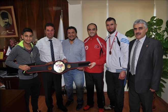 Adana Gençlik Hizmetleri ve Spor İl Müdürü Abdulkadir Ataşbak, 26-28 Şubat tarihleri arasında Eskişehir´de gerçekleştirilen “Profesyonel Kick Boks Türkiye Şampiyonası”nda güçlü rakiplerine rağmen 60 kiloda birinci olarak altın kemeri almaya başaran Yusuf Şamil Özkaya ile 81 kiloda Türkiye ikincisi olan Mehmet Ataş ile Kick Boks Federasyonu Adana İl Temsilcisi Şehmus Baysal ile Milli Takım Antrenörü Hakan Şahade´yi makamında kabul ederek müsabaka ile ilgili bilgi aldı.