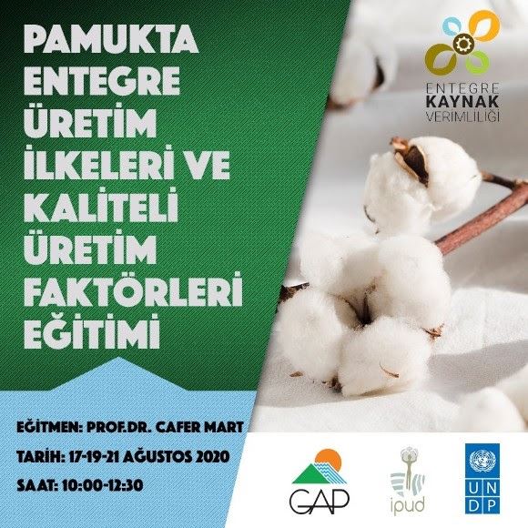 ‘Pamukta Entegre Üretim İlkeleri ve Kaliteli Üretim Faktörleri’ konulu eğitim serisi GAP Bölge Kalkınma İdaresi’nin UNDP teknik işbirliği ile yürüttüğü ‘Tarım ve Tarıma Dayalı Sanayide Entegre Kaynak Verimliliği Projesi’ kapsamında bölgede İyi Pamuk (Better Cotton) uygulamalarının yaygınlaştırılma çalışmalarının bir parçası olarak 17-19-21 Ağustos 2020 tarihlerinde Prof. Dr. Cafer Mart tarafından verilecek.