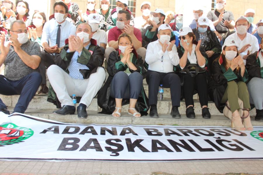 Adana Baro Başkanı Av. Veli Küçük, Başkan Yardımcısı Av. Sabahattin Gümüş, Genel Sekreter Av. Semih Gökayaz ve Yönetim Kurulu Üyesi Av. Nevzat Elçi’nin de yer aldığı 56 Baro Başkanının Cuma günü (19. 06.2020) Ankara’ya başlattığı Savunma Yürüyüşü’nün bugün, Eskişehir yolunda kolluk güçleri tarafından hukuksuz bir şekilde engellenmesi, bazı baro başkanlarının da darp edilmesi üzerine Adana Barosu’nun çağrısıyla eski Adliye (Taş Bina) önünde bir araya gelen avukatlar basın açıklaması ve oturma eylemiyle yaşananları protesto etti.