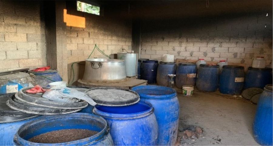 Adana'da kaçak içki imalatı yapılan bir adreste 4 bin litre fermente halde kaçak içki ele geçirildi.