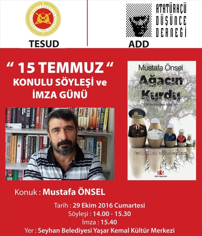 Türkiye Emekli Subaylar Derneği (TESUD) Adana Şube Başkanı Em.Albay S.Sırrı SARAÇOĞLU ve Atatürkçü Düşünce Derneği (ADD) Adana Şube Başkanı İsa KAYADAN tüm Adana halkını söyleşiye davet ediyor.