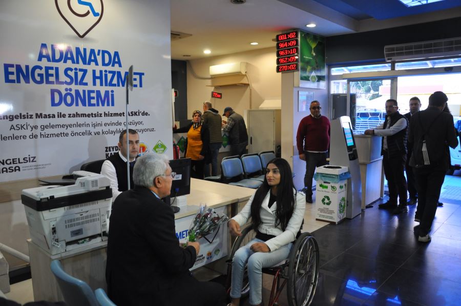 ASKİ Genel Müdürlük binasında faaliyete geçirilen ‘’Engelsiz Masa’’ uygulaması sayesinde çeşitli abonelik işlemleri için kuruma başvuran engelli aboneler, ASKİ personelleriyle birlikte tüm işlemlerini en hızlı şekilde tamamlıyor.