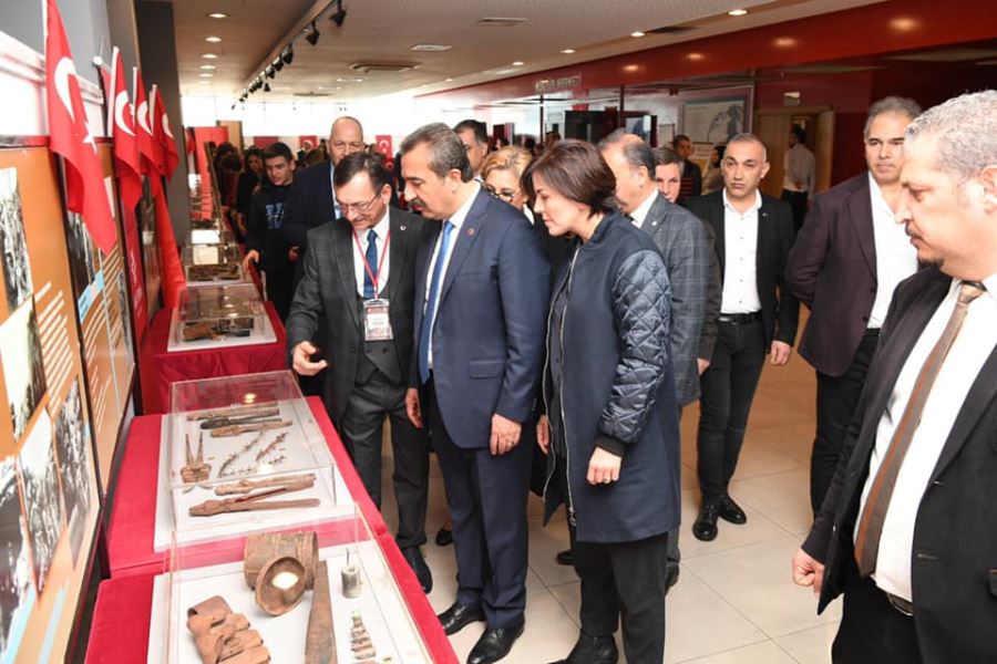 Konuşmaların ardından Başkan Soner Çetin ve okul yöneticileri serginin açılışını gerçekleştirdi ve beraberindekilerle birlikte sembolik şehitlik anıtına karanfil bıraktı.