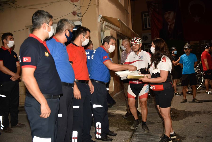 Adana Bisiklet Topluluğu üyeleri İtfaiye Haftası kutlamaları çerçevesinde Adana Büyükşehir Belediyesi İtfaiye Daire Başkanlığı’nı ziyaret ederek, nöbetteki itfaiyecilere tatlı ikramında bulundu.Her Çarşamba, Cuma ve Pazar günleri Adana’da bisiklet turu atan topluluk,bu kez fedakarca görev yapan itfaiyecileri gece nöbetinde ziyaret etti. İtfaiye haftası nedeniyle 6 yıldır itfaiye çalışanlarını yalnız bırakmayan ABİT üyeleri nöbetteki itfaiyecilere tatlı ikram ederek haftalarını kutladı.