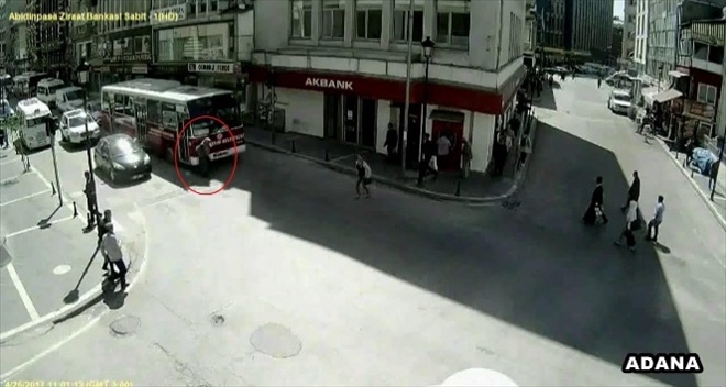 Meydana gelen kazaların en dikkat çekici olanı Abidinpaşa Caddesinde yaşandı. Kırmızı ışıkta bekleyen bir belediye otobüsünün şoförü yeşil ışığın yanmasıyla birlikte aracı hareket ettiriyor. O saniyelerde karşıdan karşıya geçmeye çalışan yaya, otobüsün önünde kalıyor. Şoförün görüş açısı dışında kalan yaya otobüsün altında kalmaktan koşarak kurtuluyor.