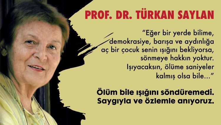 Türkân Saylan’ın sadece bedensel olarak aramızdan ayrıldığını ve bugün, adı verilen onlarca sokak, park ve eğitim merkezi ile yaşamaya devam ettiğini belirten ÇYDD Genel Başkanı Yüksel, “Türkân Hocam, gözünüz sakın arkada kalmasın çünkü Türkiye’nin dört bir yanındaki şubelerimiz, üyelerimiz, gençlerimiz ve destekçilerimiz ile canla başla çalışıyoruz. ÇYDD tüzüğü doğrultusunda, çağdaş geleceğe ulaşmak için ümidimizi kaybetmiyoruz” dedi.