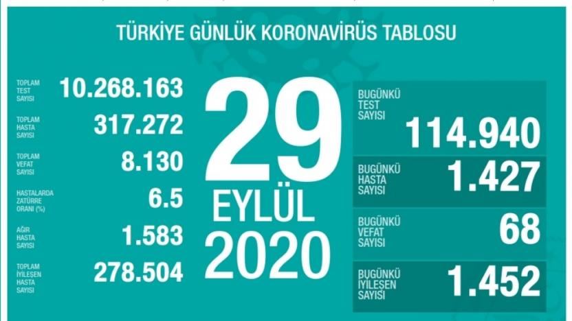 Ülkede son 24 saatte bin 427 vaka kaydedildi, 68 ölüm gerçekleşti