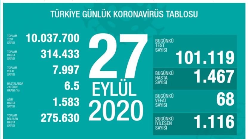 Ülkede son 24 saatte bin 467 vaka kaydedildi, 68 ölüm gerçekleşti