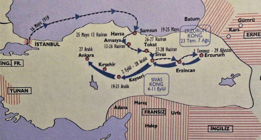 16 Mayıs 1919 sabahı Bandırma Vapuru ile aklında direniş ve istiklal fikirleriyle Samsun’a hareket eder.
