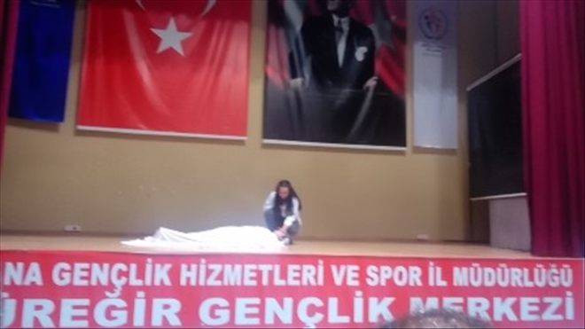 Elif Sürmeli´nin yazdığı ve Atakent İMKB Meslek ve Teknik Anadolu Lisesi öğretmenleri Nilay Bayırbal ve Bilgin Güneş´in hazırladığı, Mine Koşan, Ayşegül Çakır, Berfin Sarıdoğan, Fatmagül Coşman, Beyza Topla, Kardelen Hanlı, Sariyenur Tegek, Naciye Ceyhan, Ayşe Örüç, Rabia Oğur, Fatma Köksal ve Filiz Masat adlı öğrencilerin rol aldığı oyun Yüregir Gençlik Merkezi Salonu´nda sahnelendi. Oyunda gençlerin uyuşturucuya nasıl başladıkları, uyuşturucu ile ailelerin mücadelesi ve yapması gerekenler ile uyuşturucu müptelası gençlerin başta kendilerine ve ailelerine verdikleri sonu acıyla biten dramları anlatılıyor.