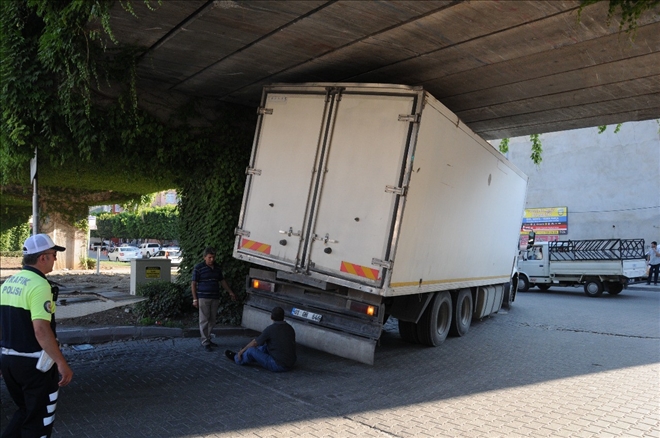 Edinilen bilgiye göre, yüklediği sebzeleri İzmir´e götürmek üzere yola çıkan Yaşar K. idaresindeki 01 GH 646 plakalı kamyon, Seyhan ilçesi Bakımyurdu Caddesi ve Güneykuşak Bulvarı´nın kesiştiği kavşakta 3 metre 50 santim yüksekliğindeki metro köprüsü altından geçmek istediği sırada başka bir araç tarafından sıkıştırıldı. Otomobile çarpmamak için aniden direksiyonu kıran Yaşar K. yönetimindeki kamyon, ağırlığın da etkisiyle köprü altında yana kaydı. Köprüye takılarak devrilmekten kurtulan kamyon, metro köprüsünde sıkıştı. Kentin en işlek caddelerinden biri olan Bakımyurdu Caddesi ve Güneykuşak Bulvarı uzun süre felç oldu. Kamyon olay yerine çağrılan çekici yardımıyla sıkıştığı yerden çıkartıldı. Kamyon sürücüsüne yasak saatte şehir merkezine girmek suçundan 95 lira para cezası kesildi.(CO)