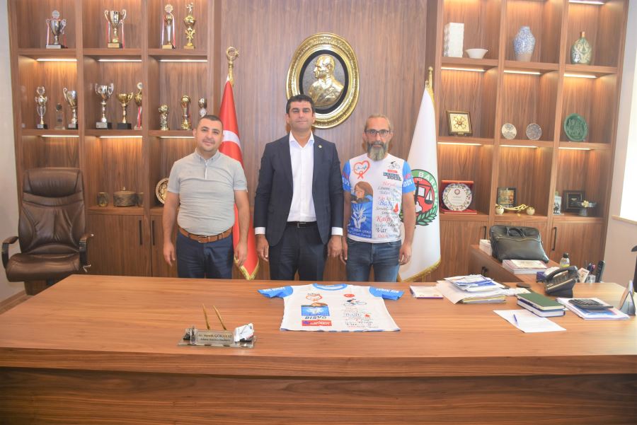 Organ bağışı, kök hücre ve lösemi hastalarının tedavisi konusunda farkındalık oluşturmak için her yıl bisikleti ile pedal basarak Türkiye’yi karış karış gezen gazeteci Kemal Yücel, Adana Barosu Başkanı Av. Semih Gökayaz’ı makamında ziyaret etti. Yarın Atatürk Parkı’ndan başlayacağı yolculuğu boyunca 41 ili ziyaret edecek olan Yücel, altı bin kilometre yol kat edeceğini söyledi. Av. Gökayaz, Yücel’e ziyaret edeceği illerde onkoloji hastanelerinde tedavi gören çocuklara dağıtacağı oyuncakları temin edeceklerini açıkladı. Adana Barosu üyesi avukatlar da yarın sabah bisikletleriyle Yücel’e destek verip, kentten uğurlayacak.