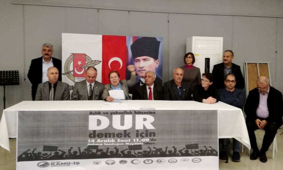 Birleşik Kamu-İş Konfederasyonu Adana il Temsilcisi Seniha Soylugan, hiç kimsenin memnun olmadığı 2020 bütçesinin emekçiden yana olmadığını belirtti. Bu çerçevede 14 Aralık’ta Ankara Tandoğan Meydanı’nda hazırlanan bütçeyi protesto edeceklerini kaydeden Soylugan, tüm emek bileşenlerini ve yurttaşları protesto mitingine davet etti.