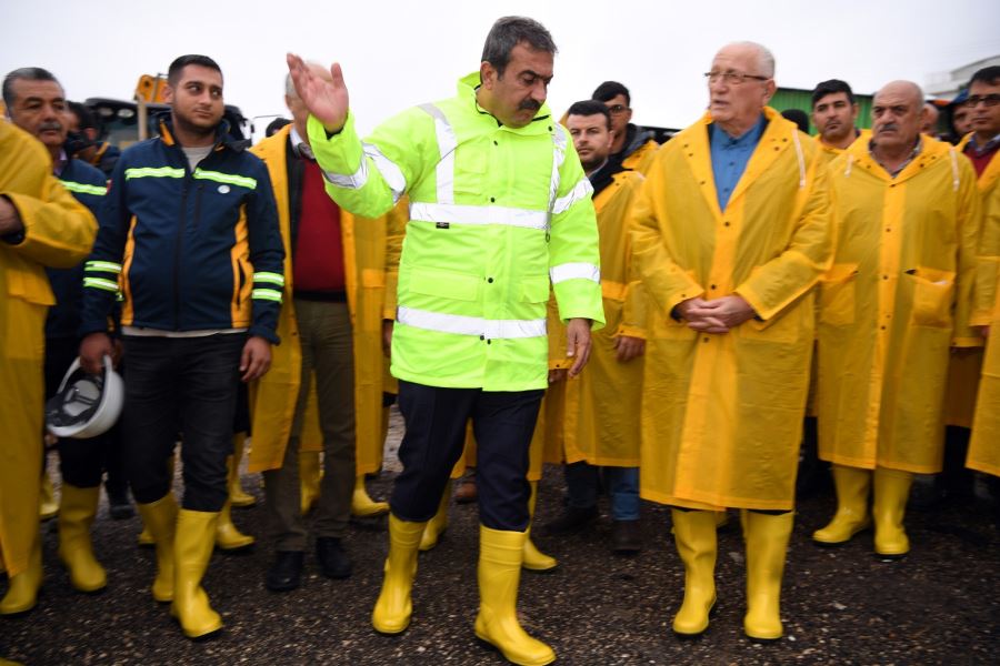 Çukurova Belediye Başkanı Soner Çetin’in talimatı ile oluşturulan Acil Müdahale Birimi, günün 24 saati görev yapıyor. Şantiyede işçileri ziyaret eden Başkan Soner Çetin, çizmelerini çekti, yağmurluğu giydi ve çalışmaları denetledi.