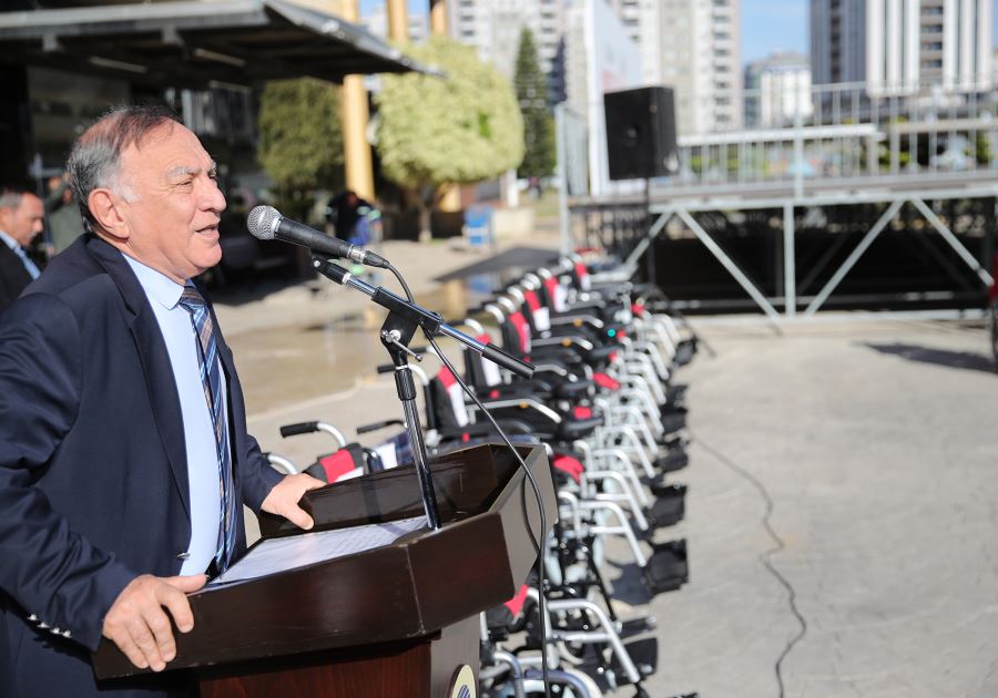 Yaşar Kemal Kültür Merkezi önünde yapılan Tekerlekli Sandalye dağıtım törenine, Engelli bireyler, Mahalle muhtarları ve Belediye bürokratları katıldı. Engellileri tek tek selamlayan Başkan Akay, daha sonra yaptığı konuşmada 3 Aralık’ın, 1992 yılında Birleşmiş Milletler tarafından Dünya Engelliler Günü olarak kabul edildiğini anımsattı. Akay “Biz engellilerin yaşam kalitesini artırarak “engelsiz bir yaşam” sürmeleri ve toplumun diğer kesimlerinin yararlandığı tüm hizmetleri aynı oranda kullanabilmelerine yönelik hassasiyetimize en yüksek noktada devam ediyoruz” dedi.