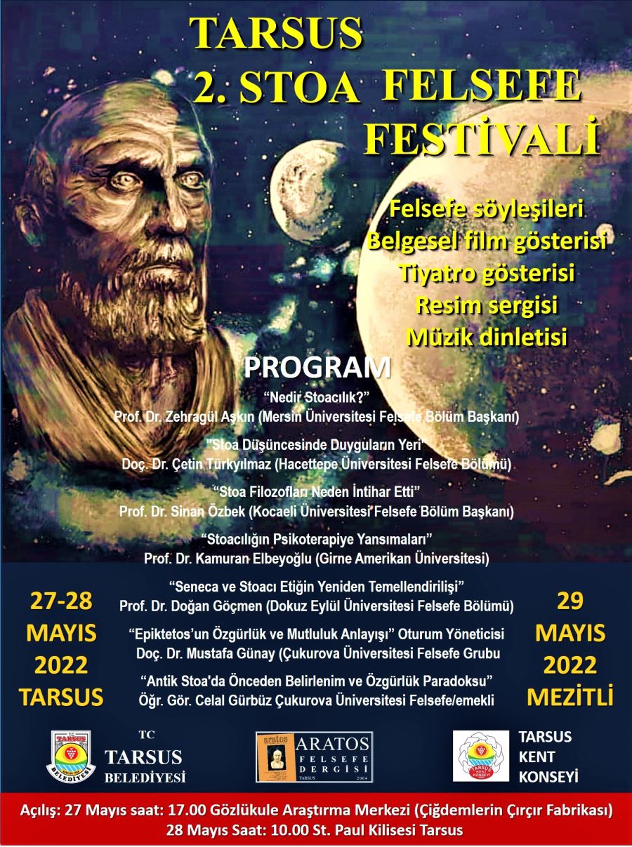 Tarsus 2. Stoa Felsefe Festivali Tarsus Belediyesi, Tarsus Kent Konseyi ve Aratos Felsefe Dergisi’nce ortaklaşa gerçekleştiriliyor.